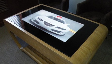 桌面投影,成像面積直徑3.2米的圓,設計2臺科視Christie?DWU760-is,2枚0.9:1鏡頭,機型參數:激光光源,7150流明,WUXGA 1920*1200?投影方式:2行1列融合,融合帶約 66% ,單臺投影:3.84米*2.4米,全屏分辨率:1600*1600pix ,屏前照度:約770Lux,安裝距離:配置0.9:1標準鏡頭,設備距離桌面幕3.5米安裝。