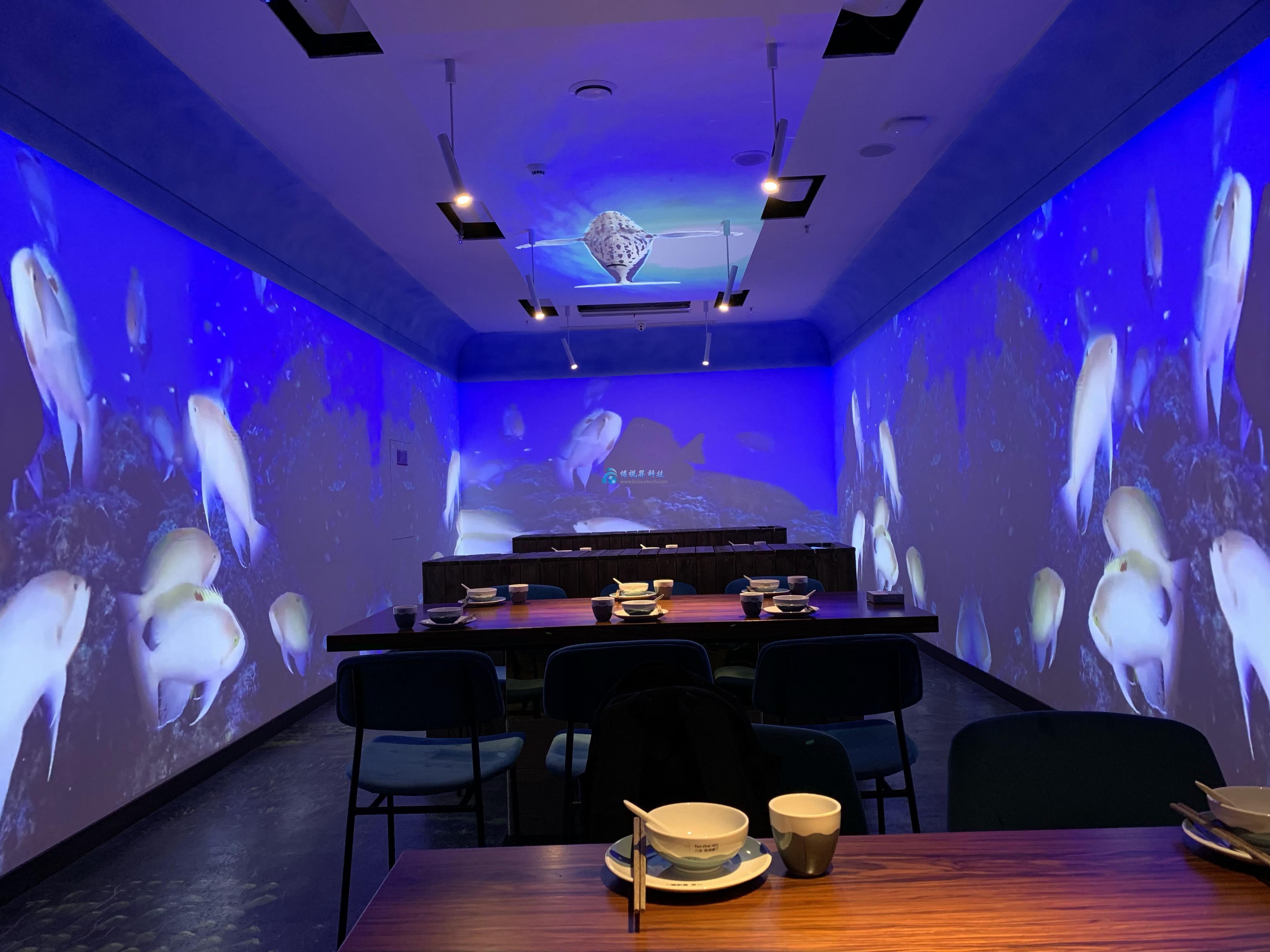 網紅店集漁火鍋入駐桂林后,博視界科技與其合作成功打造第一個5D全息包間,效果杠杠滴 ?